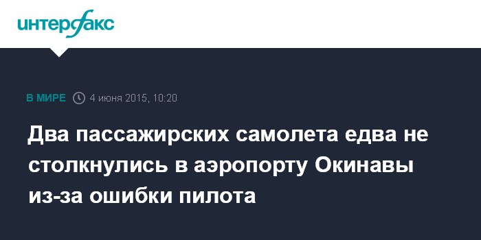 Два пассажирских самолета едва не столкнулись в аэропорту Окинавы из-за ошибки пилота
