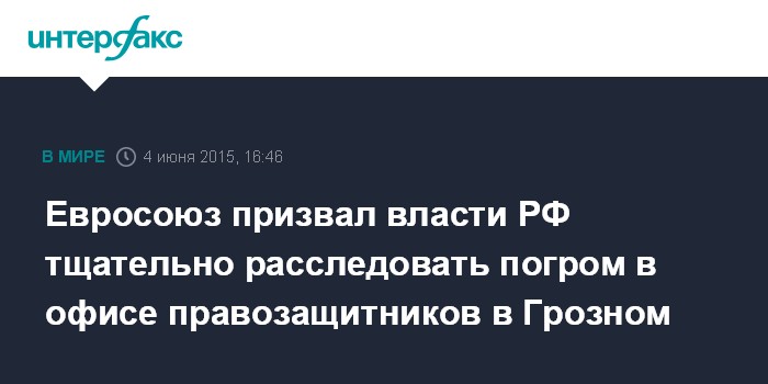 Евросоюз призвал власти РФ тщательно расследовать погром в офисе правозащитников в Грозном