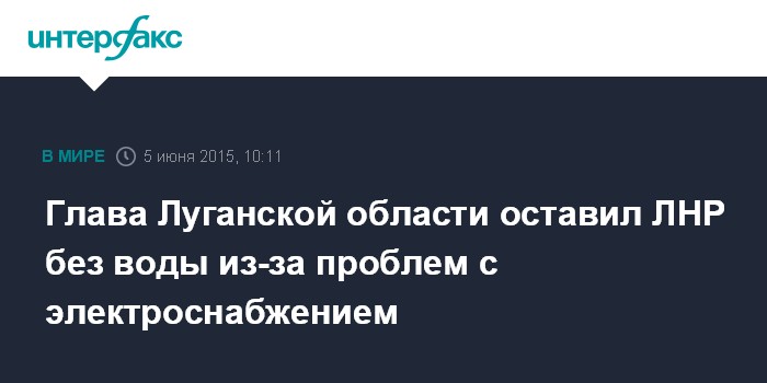 Глава Луганской области оставил ЛНР без воды из-за проблем с электроснабжением