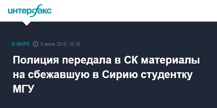 Полиция передала в СК материалы на сбежавшую в Сирию студентку МГУ
