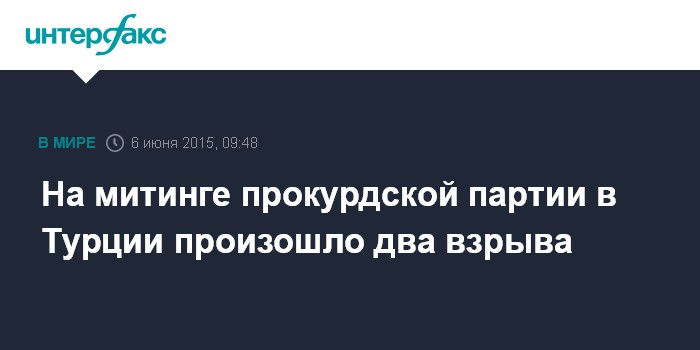 Взрывы прогремели на митинге прокурдской Демократической партии народов в преддверии парламентских выборов, проведение которых намечено на воскресенье.