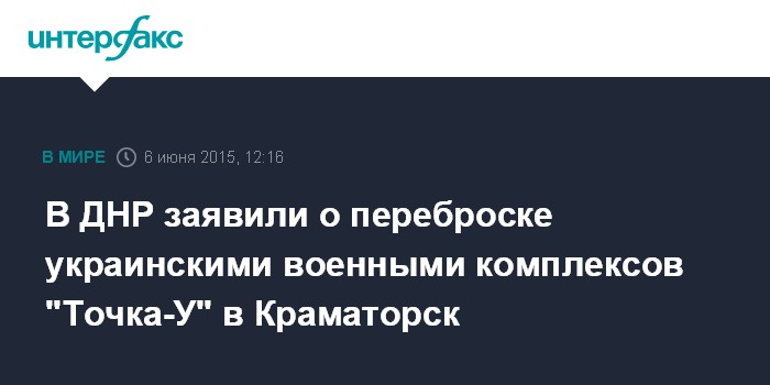 В ДНР заявили о переброске украинскими военными комплексов "Точка-У" в Краматорск