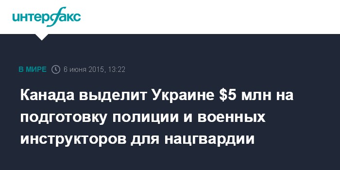 Москва. 6 июня. INTERFAX.RU - Канада выделяет 5 млн долларов для подготовки полицейских и военных инструкторов для нацгвардии Украины, сообщил премьер-министр Украины Арсений Яценюк.