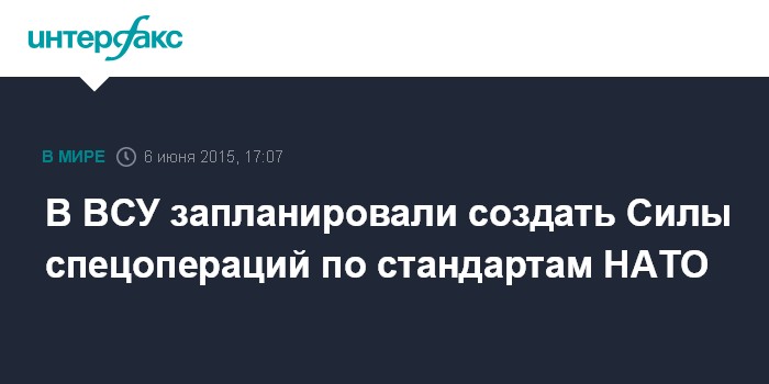 Москва. 6 июня. INTERFAX.RU - На Украине намечено ускорить развитие Военно-морских сил, а также создать в составе Вооруженных сил Силы специальных операций по стандартам НАТО.