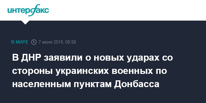 В ДНР заявили о новых ударах со стороны украинских военных по населенным пунктам Донбасса