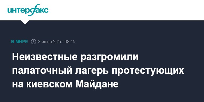 Москва. 8 июня. INTERFAX.RU - Неизвестные в масках в ночь на понедельник снесли палаточный лагерь, установленный в воскресенье днем на Майдане Незалежности в центре Киева группой лиц, устроивших акцию "Майдан 3.0".