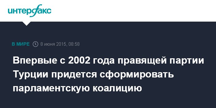 В соответствии с конституцией Турции, партии придется впервые с 2002 года сформировать коалицию.