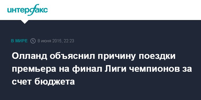 Москва. 8 июня. INTERFAX.RU - Президент Франции Франсуа Олланд в понедельник выступил в защиту своего премьера Манюэля Вальса, раскритикованного оппозицией за поездку за государственный счет в минувшие выходные в Берлин на финал футбольной Лиги чемпионов.