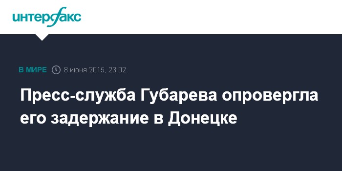 Москва. 8 июня. INTERFAX.RU - В пресс-службе бывшего "народного губернатора" Донбасса Павла Губарева не подтвердили информацию о его задержании в Донецке.
