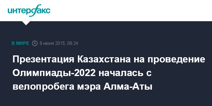 Москва. 9 июня. INTERFAX.RU - Аким (глава администрации) Алматы Ахметжан Есимов, отстаивая право города на проведение зимних Олимпийских игр 2022 года, совершил велопробег в швейцарской Лозанне, сообщила во вторник дирекция международных спортивных проектов Алма-Аты.
