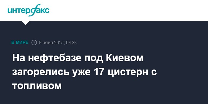 Москва. 9 июня. INTERFAX.RU - Возникший накануне вечером пожар на нефтебазе под Киевом пока погасить не удается, в настоящее время огнем охвачены уже 17 цистерн, сообщает телеканал "112 Украина".