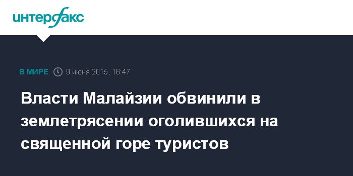 Москва. 9 июня. INTERFAX.RU - Власти Малайзии обвинили в землетрясении десятерых туристов из Европы и Канады, оголившихся на вершине священной горы Кинабалу, сообщает британская газета The Independent.