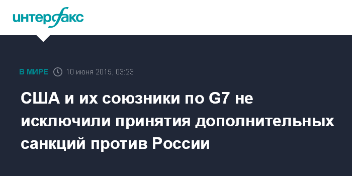 Москва. 10 июня. INTERFAX.RU - США и их союзники по G7 готовы ввести в отношении России дополнительные санкции, заявил министр финансов США Джейк Лью, сообщает Reuters.