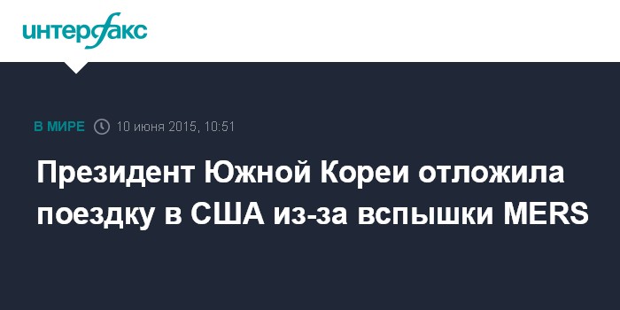 Москва. 10 июня. INTERFAX.RU - Президент Южной Кореи Пак Кын Хе отложила запланированный на эти выходные визит в США для проверки того, как идет борьба со вспышкой коронавируса (MERS) в стране. Об этом сообщает "Би-би-си".