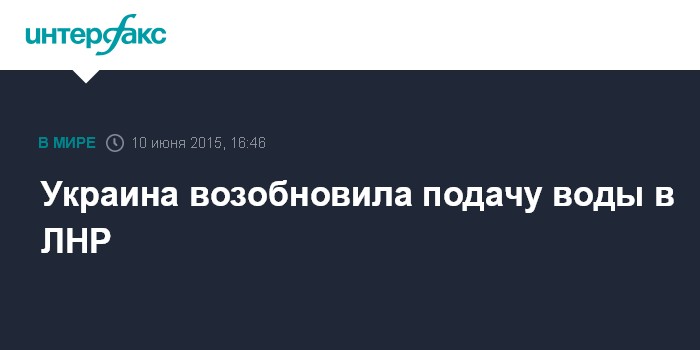 В свою очередь, главный инженер ОКП "Компания "Лугансквода" Алексей Анчишкин сообщил, что вода с украинской территории подается в ЛНР с минувшего вторника. "Вчера, 9 июня, в 15:00 возобновилась подача воды на территорию республики с двух водозаборов, расположенных на подконтрольной Киеву территории. Сейчас заполняются водопроводные сети", - сказал он.