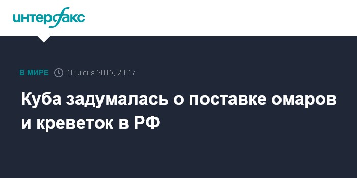 Москва. 10 июня. INTERFAX.RU - Куба в ближайшее время может начать поставки омаров и креветок в РФ, сообщает Россельхознадзор по итогам встречи с советником-посланником посольства Кубы в Москве Роландо Сайясом Бу.