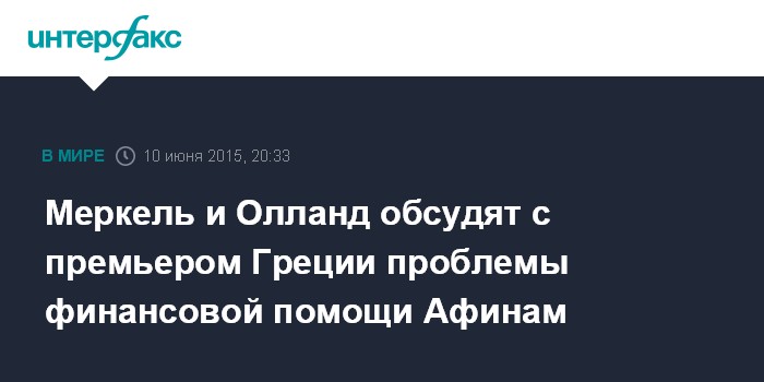 Москва. 10 июня. INTERFAX.RU - Канцлер Германии Ангела Меркель и президент Франции Франсуа Олланд проведут в среду вечером переговоры с премьером Греции Алексисом Ципрасом, сообщает агентство EFE.