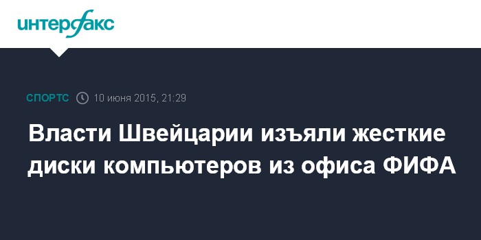 Москва. 10 июня. INTERFAX.RU - Федеральное управление юстиции Швейцарии изъяло из штаб-квартиры ФИФА жесткие диски офисных компьютеров, сообщает BBC News.