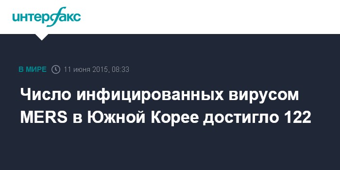 Число инфицированных вирусом MERS в Южной Корее достигло 122
