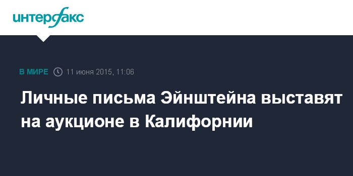 Москва. 11 июня. INTERFAX.RU - Личные письма создателя теории относительности Альберта Эйнштейна выставят в четверг на торгах аукционного дома Profiles in History в Калифорнии (США).