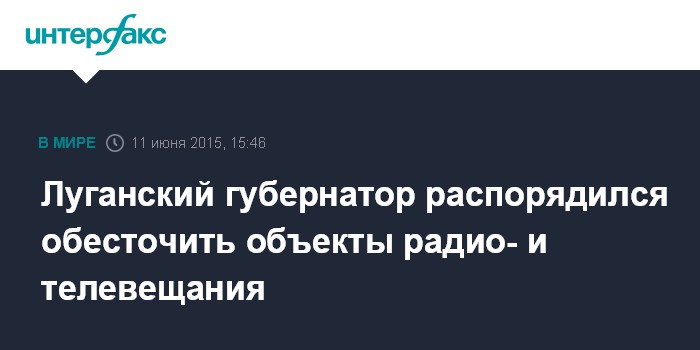 Москва. 11 июня. INTERFAX.RU - Руководитель Луганской областной военно-гражданской администрации Геннадий Москаль подписал распоряжение, которым обязал ООО "Луганское энергетическое объединение" отключить от энергоснабжения главные объекты луганского филиала украинского концерна радиосвязи, радиовещания и телевидения (концерн РРТ), а всех сотрудников филиала - выехать на контролируемую Украиной территорию.