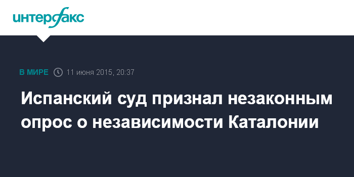 Москва. 11 июня. INTERFAX.RU - Конституционный суд Испании вынес вердикт о незаконности организации опроса о самоопределении Каталонии, который состоялся 9 ноября 2014 года, говорится в опубликованном в четверг судебном постановлении.