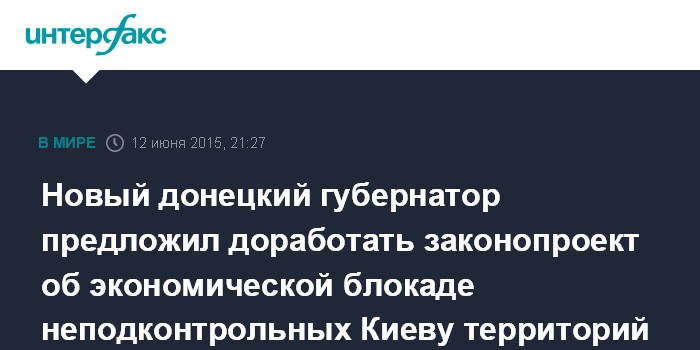 Москва. 12 июня. INTERFAX.RU - Новый глава Донецкой областной государственной администрации (ОГА) Павел Жебривский выступает за доработку законопроекта "об экономической блокаде оккупированных территорий".
