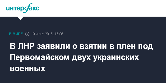 Москва. 13 июня. INTERFAX.RU - Бойцы народной милиции самопровозглашенной Луганской народной республики захватили двух украинских военных, сообщают в ЛНР.