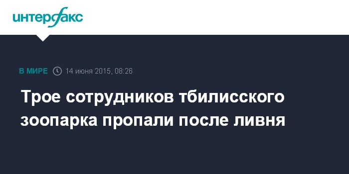 Москва. 14 июня. INTERFAX.RU - Трое сотрудников Тбилисского зоопарка считаются пропавшими без вести, заявил журналистам в воскресенье представитель администрации зоопарка Георгий Гиоргадзе.