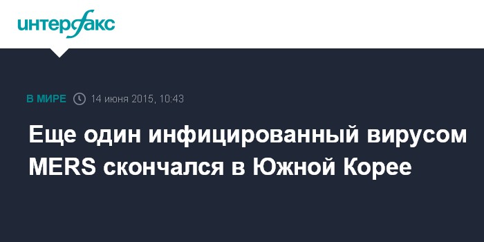 Москва. 14 июня. INTERFAX.RU - В Южной Корее от вируса MERS в воскресенье скончался 15-й больной, сообщили южнокорейские СМИ.
