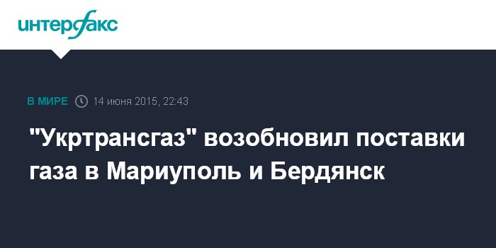 Москва. 14 июня. INTERFAX.RU - Поставки газа в Мариуполь и Бердянск возобновлены, сообщил в своем фейсбуке премьер-министр Украины Арсений Яценюк.