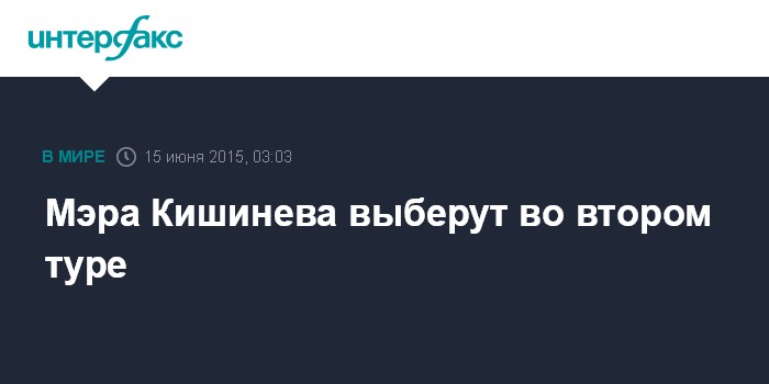 Москва. 15 июня. INTERFAX.RU - Для избрания мэра Кишинева понадобится второй тур выборов. Как сообщили "Интерфаксу", за мандат мэра 28 июня будут бороться кандидат от Партии социалистов, бывший премьер-министр в правительстве коммунистов (2007-2008 год) Зинаида Гречанная и вице-председатель Либеральной партии Дорин Киртоакэ, который управляет городом с 2007 года.