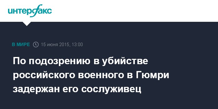 Москва. 15 июня. INTERFAX.RU - Военнослужащий российской военной базы задержан по подозрению в убийстве сослуживца, сообщают армянские СМИ со ссылкой на заместителя командира по работе с личным составом российской военной базы полковника Алексея Полюховича.
