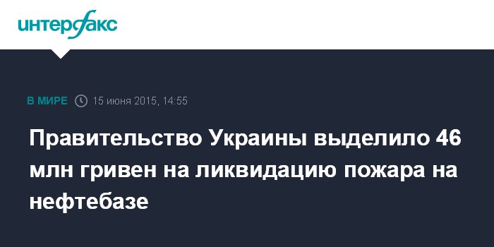 Москва. 15 июня. INTERFAX.RU - На ликвидацию пожара и его последствий на нефтебазе "БРМС-нафта" в Киевской области будет направлено более 45 млн грн, сообщил премьер-министр Арсений Яценюк.