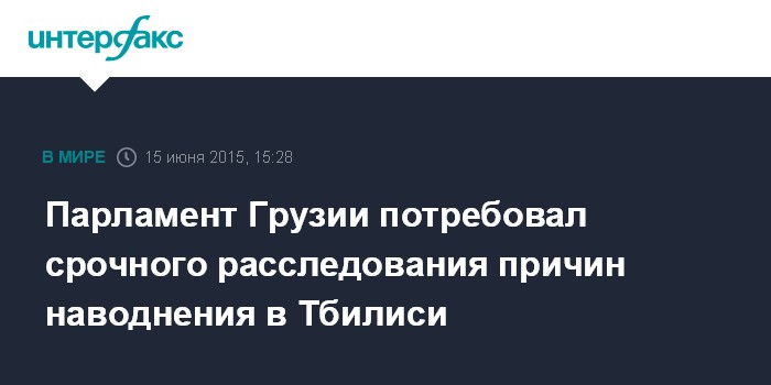 Москва. 15 июня. INTERFAX.RU - Парламент Грузии призывает следственные органы ускорить расследование причин многочисленных жертв и разрушений из-за наводнения в Тбилиси, произошедшего в ночь на воскресенье.