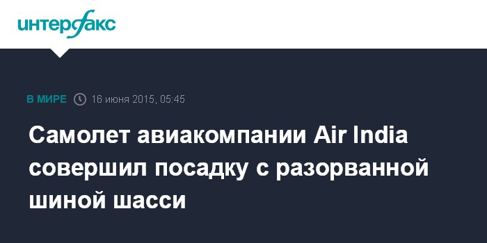 Москва. 16 июня. INTERFAX.RU - Шина самолета авиакомпании Air India разорвалась во время приземления в международном аэропорту индийского города Сринагар, сообщает интернет-сайт индийской газеты Hindustan Times.