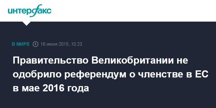 Правительство Великобритании не одобрило референдум о членстве в ЕС в мае 2016 года