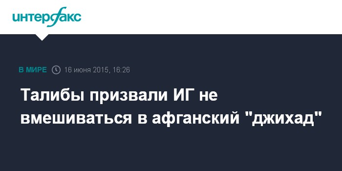 Москва. 16 июня. INTERFAX.RU - Афганские талибы во вторник обратились к лидеру экстремистской группировки "Исламское государство" Абу Бакру аль-Багдади с требованием не вмешиваться в события на территории Афганистана.