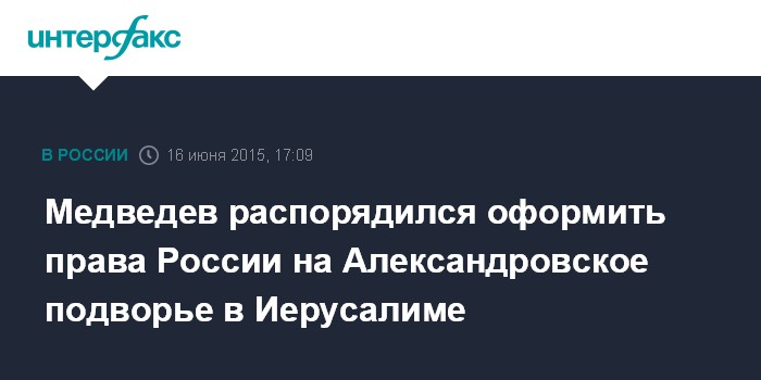 Медведев распорядился оформить права России на Александровское подворье в Иерусалиме