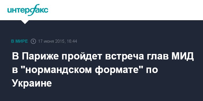 "Условлено провести 23 июня в Париже очередные консультации в "нормандском формате" на уровне министров иностранных дел в целях содействия полному выполнению минских договоренностей от 12 февраля этого года через механизмы контактной группы и ее рабочих подгрупп, включая развитие прямого диалога Киева с Донецком и Луганском", - говорится в сообщении, размещенном на сайте российского дипведомства.