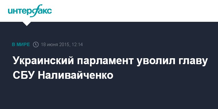 Москва. 18 июня. INTERFAX.RU - Верховная рада Украины в четверг приняла постановление об увольнении Валентина Наливайченко с должности главы Службы безопасности страны.