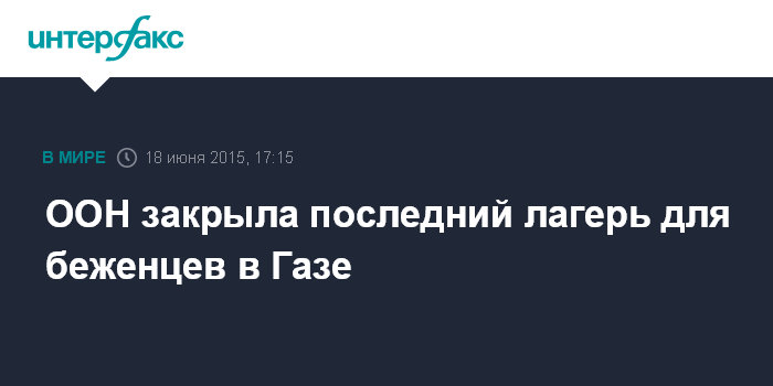 Москва. 18 июня. INTERFAX.RU - Ближневосточное агентство ООН для помощи палестинским беженцам и организации работ (UNRWA) в четверг закрыло последний лагерь в секторе Газа, сообщают западные СМИ.