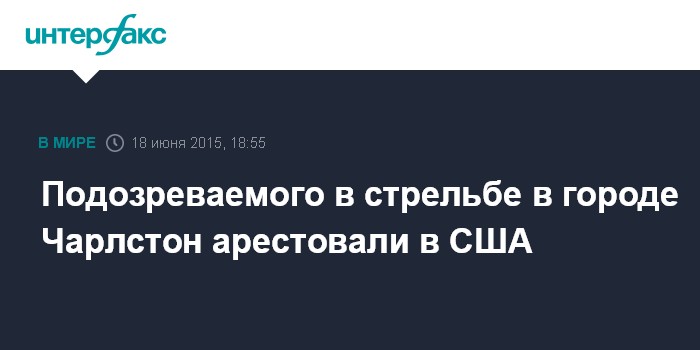 Москва. 18 июня. INTERFAX.RU - Американские правоохранители в четверг арестовали в штате Северная Каролина 21-летнего Диланна Руфа, подозреваемого в организации перестрелки в церкви в городе Чарлстон (штат Южная Каролина), сообщает американский телеканал CNN.