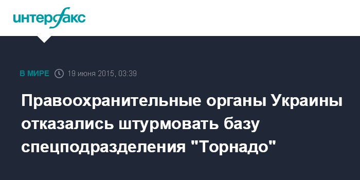 Москва. 19 июня. INTERFAX.RU - Директор департамента коммуникации МВД Украины Артем Шевченко сообщил, что не будет штурма Лисичанской школы, в которой бойцы роты патрульной службы особого назначения МВД Украины "Торнадо" препятствовали проведению следственных действий военной прокуратуры.