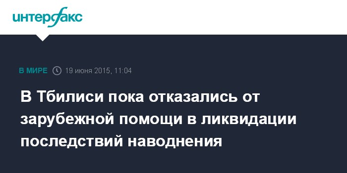 Москва. 19 июня. INTERFAX.RU - За последние сутки от зарубежных спасателей поступило много предложений о предоставлении техники и специалистов для ликвидации последствий разрушительного наводнения в Тбилиси, но на этом этапе Грузия справляется своими силами, заявил директор департамента по чрезвычайным ситуациям МВД республики Звиад Кацашвили.