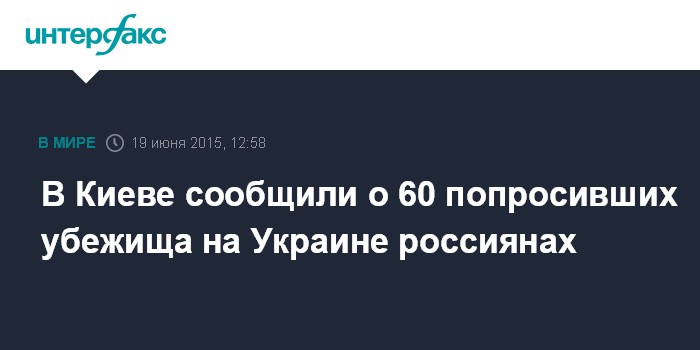 Москва. 19 июня. INTERFAX.RU - С начала 2015 года 60 граждан России попросили на Украине политического убежища, сообщила директор департамента по вопросам беженцев и иностранцев Государственной миграционной службы Наталия Науменко.