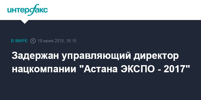 Москва. 19 июня. INTERFAX.RU - В рамках расследования уголовного дела в отношении должностных лиц национальной компании "Астана ЭКСПО" задержан управляющий директор Суламбек Баркинхоев, сообщила пресс-служба госагентства по делам госслужбы и противодействию коррупции.