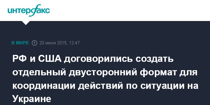 РФ и США договорились создать отдельный двусторонний формат для координации действий по ситуации на Украине