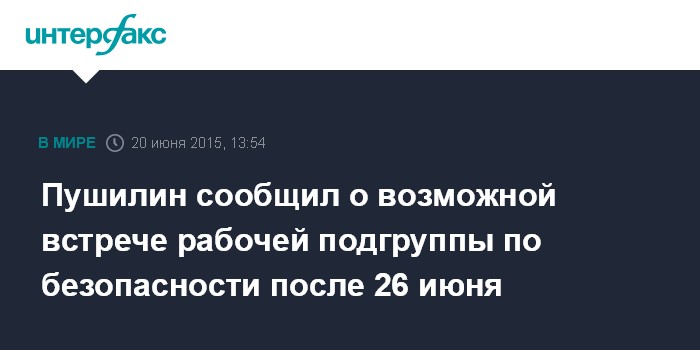 Москва. 20 июня. INTERFAX.RU - Встреча рабочей подгруппы по безопасности Контактной группы, скорее всего, пройдет не ранее следующей пятницы, заявил в субботу полпред самопровозглашенной Донецкой народной республики Денис Пушилин.