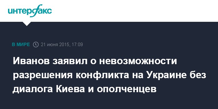 Иванов заявил о невозможности разрешения конфликта на Украине без диалога Киева и ополченцев